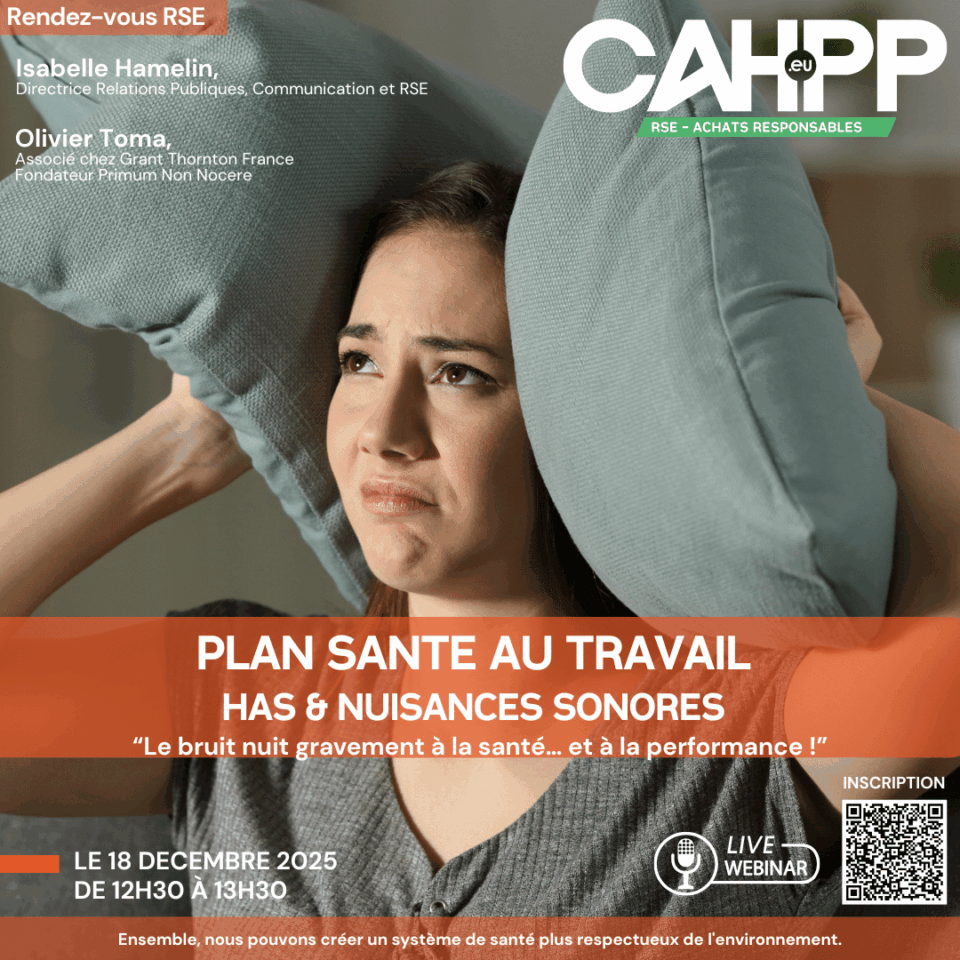 Le bruit nuit gravement à la santé… et à la performance ! Le 18 décembre de 12h30 à 13h30 🎯 Inscription : S’inscrire maintenant ! Le silence Soigne Autant que la Parole ! À l’hôpital, le bruit est omniprésent — alarmes, chariots, conversations, ventilation, téléphones… Et pourtant, cette pollution invisible a un coût bien réel : sur… Lire la suite RDV RSE : Nuisances sonores, Le bruit nuit gravement à la santé… et à la performance !