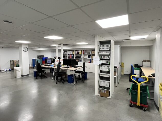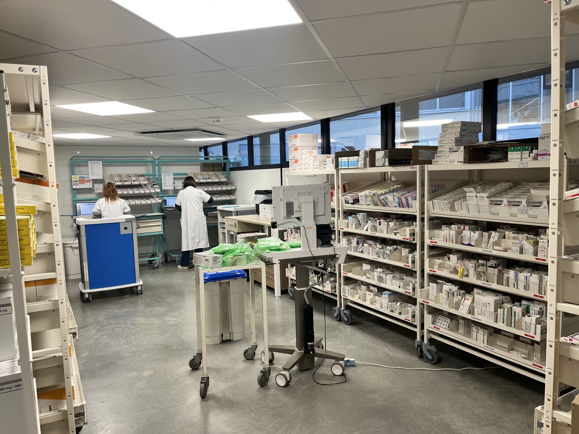 Le défi principal résidait dans la configuration des nouveaux locaux. François Doussin, directeur technique, précise : « Le nouvel espace était plus grand mais de forme atypique. Il n’avait pas été conçu pour le stockage de médicaments. Nous avons sollicité CAHPP pour optimiser les capacités, rationaliser les espaces et améliorer la fluidité de l’activité. » Pour Maud Gendron, pharmacienne, les objectifs étaient multiples : « Nous avions besoin d’un espace dédié à la préparation des traitements médicamenteux et notamment la DJIN, de bureaux administratifs et de zones de stockage sectorisées (solutés, produits inflammables, gaz médicaux, etc…). Nous savions ce que nous voulions, mais pas comment le mettre en œuvre techniquement. »