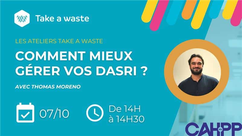 En juillet, le ministère de la Santé a publié la version révisée du guide sur l’élimination des DASRI. Pour accompagner les établissements de santé, Take a waste organise en collaboration avec la CAHPP, un webinaire qui pourrait vous intéresser le mardi 7 octobre de 14h à 14h45.