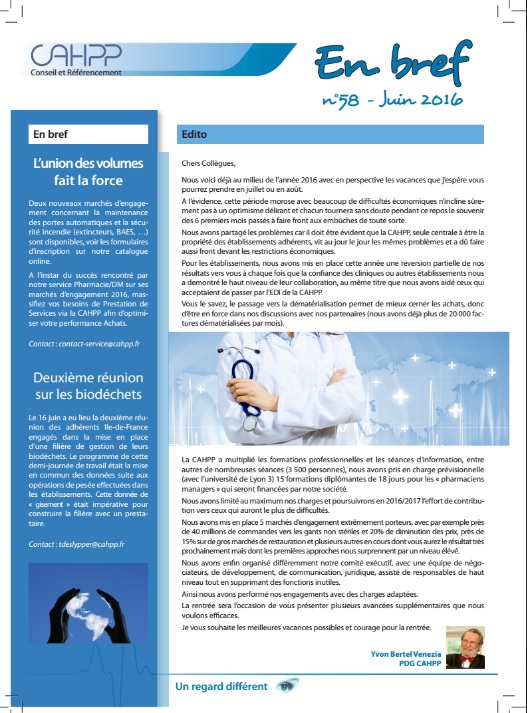 Nous avons partagé les problèmes car il doit être évident que la CAHPP, seule centrale à être la propriété des établissements adhérents, vit au jour le jour les mêmes problèmes et a dû faire aussi front devant les restrictions économiques.