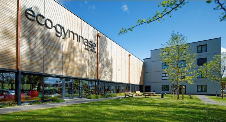 L’exemple de notre éco-gymnase en est assez explicite. Ce projet entièrement aux normes HQE (haute qualité environnementale) est un lieu dédié bien plus qu’au sport : il est propice à la quiétude et à la détente. Il est conçu avec fenêtres triple vitrage auto nettoyant fabriqué localement, bioclim, utilisation de la géothermie, charpente en lamellé collé, utilisation du robinier et produits sans émanations toxiques.