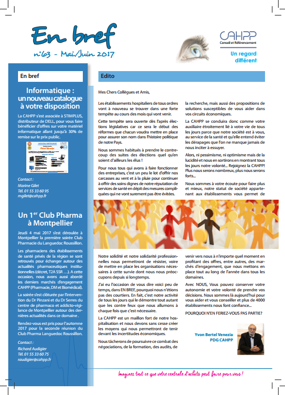 Rejoignez la CAHPP! Plus nous serons nombreux, plus nous serons forts… Nous sommes à votre écoute pour faire plus et mieux, notre statut de société appartenant aux établissements vous permet de venir vers nous à n’importe quel moment en profitant des offres, entre autres, des marchés d’engagement, que nous mettons en place tout au long de l’année dans tous les domaines.