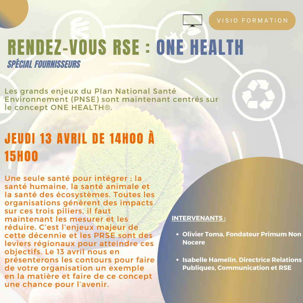 Une seule santé pour intégrer ; la santé humaine, la santé animale et la santé des écosystèmes. Toutes les organisations génèrent des impacts sur ces trois piliers, il faut maintenant les mesurer et les réduire. C’est l’enjeu majeur de cette décennie et nous vous proposons d’en définir les contours pour faire de votre organisation un exemple en la matière et que ce concept soit une chance pour l’avenir.