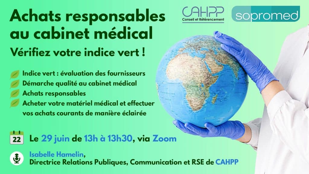 Que vous soyez médecin, responsable de cabinet ou simplement intéressé par les #achatsresponsables, ce webinaire vous fournira des informations précieuses pour les intégrer dans votre pratique quotidienne.