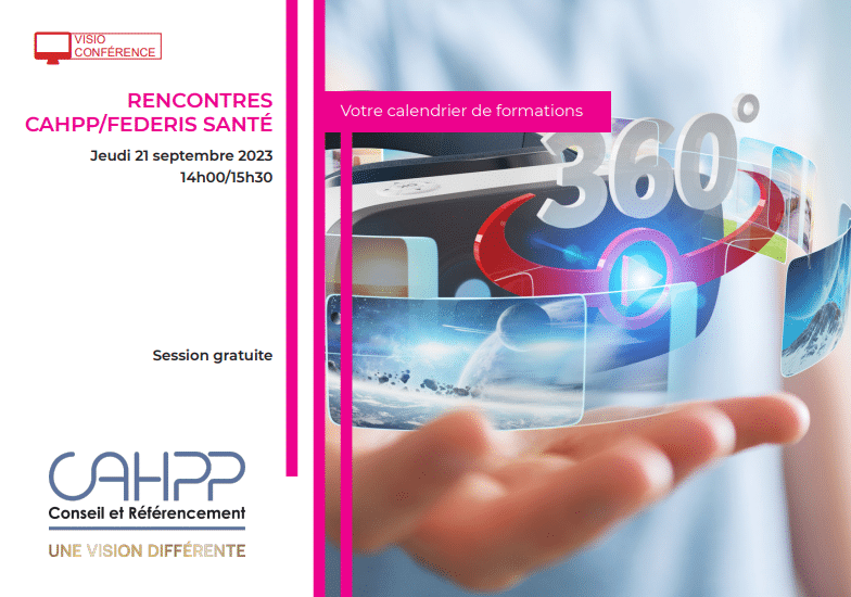 à 15h30 pour vous présenter au côté de Mme Séverine BOICHOT, Dirigeante de FEDERIS SANTÉ, le calendrier de notre partenariat de formations agrées QUALIOPI pour le second semestre 2023.